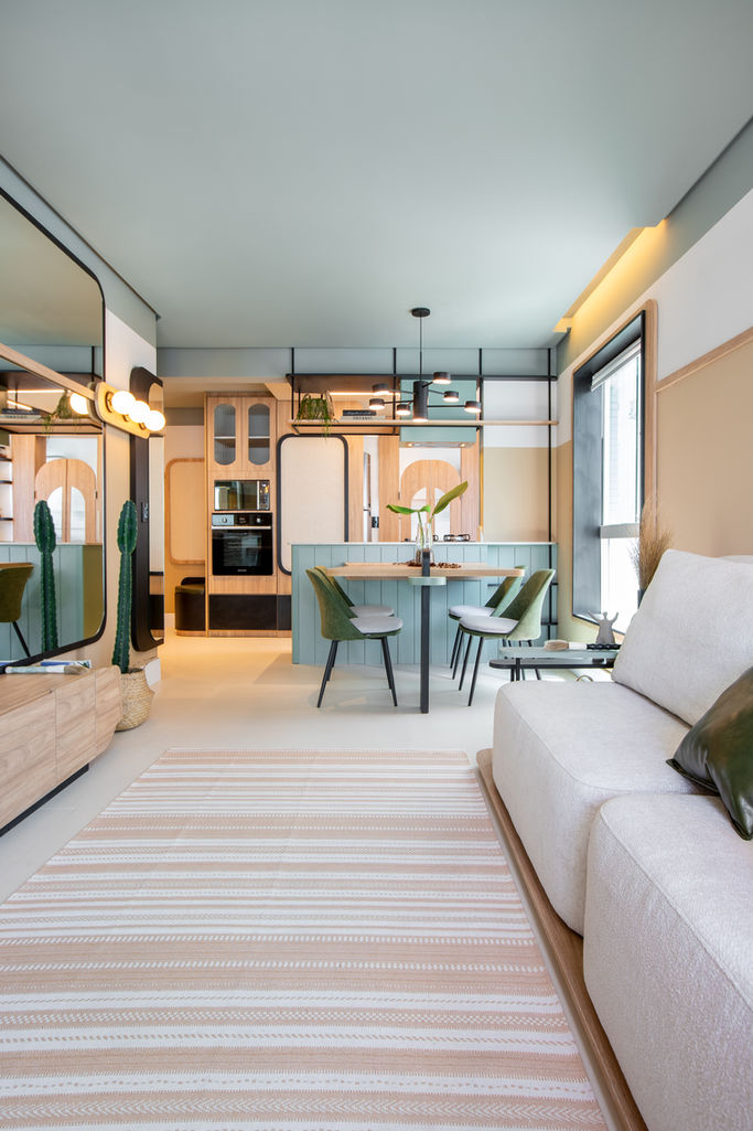 Um projeto para um imóvel decorado. Usamos como inspiração a decoração da metade pro final do século passado. As curvas, cores e materiais que adoramos, marcaram presença neste projeto.