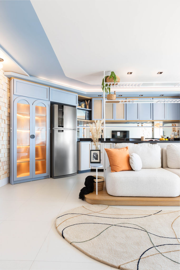Este apartamento foi feito com o intuito de ser um decorado para venda. A partir dessa informção tentamos criar uma atmofesfera de praia, calma, enfim, criarmos um refúgio na praia longe da cidade grande.