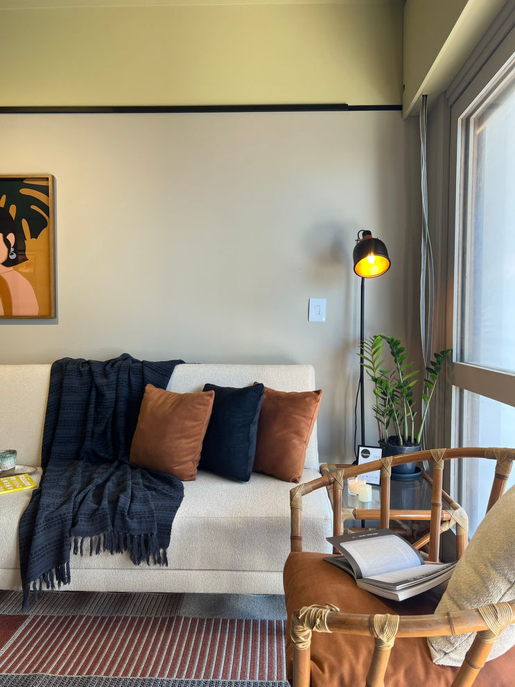 A reforma do apartamento foi feita para uma construtora com o intuito de reformar o imóvel para venda. O objetivo era não investir muito, então abusamos das cores e decoração para valorizarmos o apartamento.