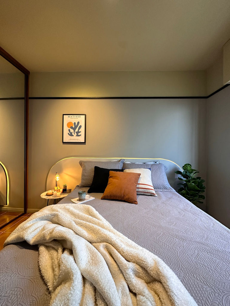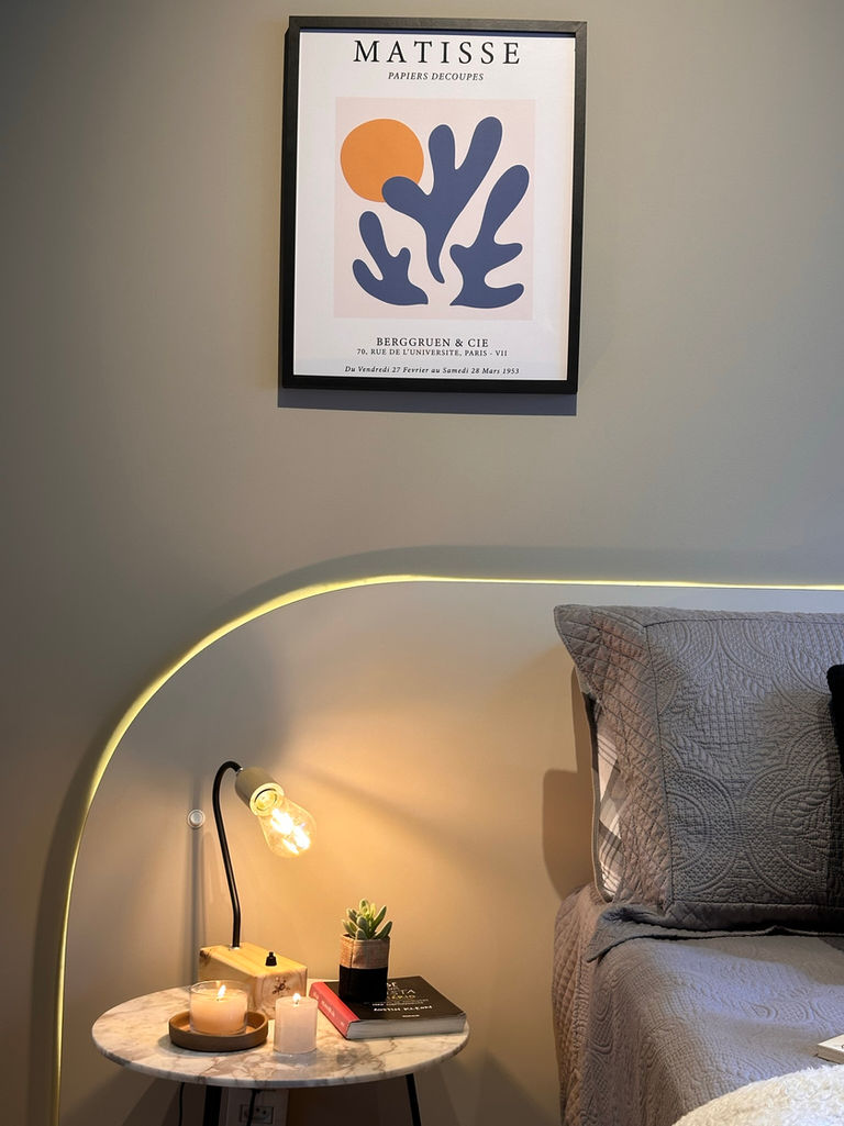 A iluminação e os elementos decorativos, junto da pintura , foram os diferenciais deste projeto.